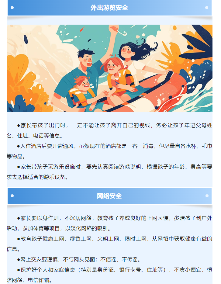我们即将迎来中秋佳节及中华人民共和国成立76周年华诞,为确保让同学们度过一个平安、健康、愉快的假期,广大家长朋友要切实履行好监护责任,牢固树立“安全第一”的理念,教育引导孩子做好安全防范,积极配合学校共同守护孩子的身心健康。